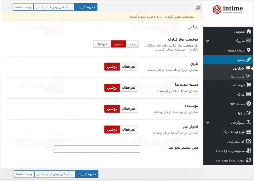 در زیر تصاویری از بخش هایی از قالب اینتایم را که برای شما به زبان فارسی ترجمه کرده ایم مشاهده میکنید. برای مشاهده تصاویر در اندازه بزرگتر روی تصویر بندانگشتی دلخواه کلیک کنید :